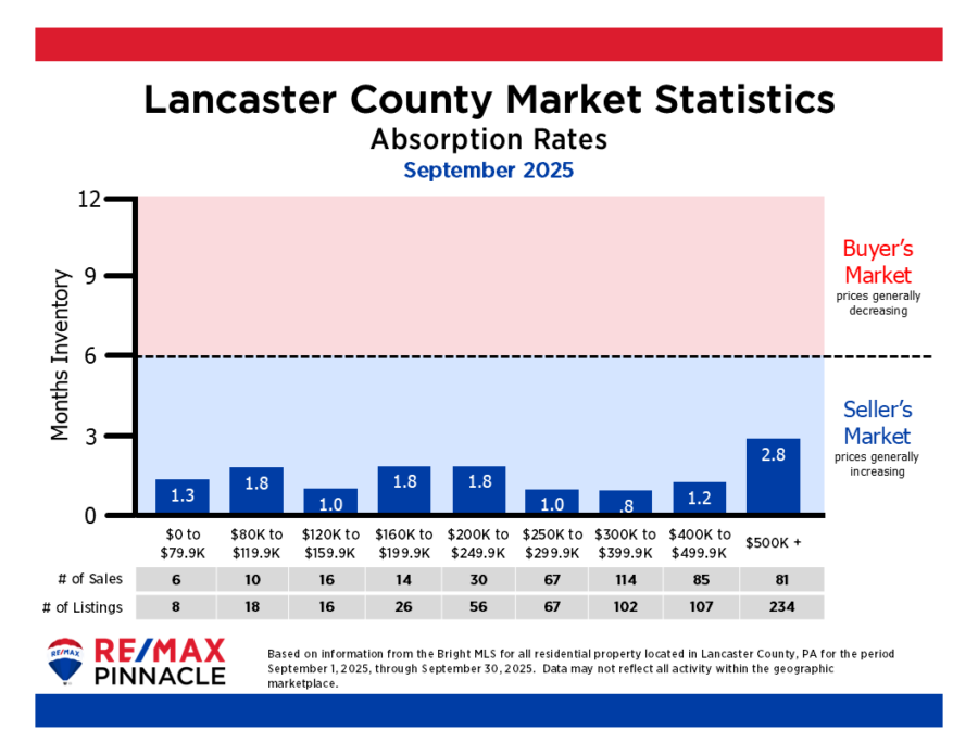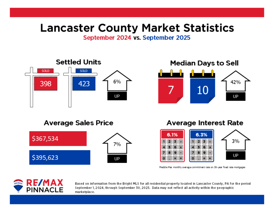 Septemberโs numbers show a market that remains strong and steady. Prices are up, sales are solid, and while homes are taking a few extra days to sell, Lancaster County continues to be a healthy, active market for both buyers and sellers.